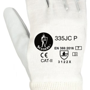pouce sur l’aile Protection des coutures du pouce avec revêtement en cuir de chèvre pleine fleur Doublure en coton interlock offrant une bonne respirabilité, avec renfort en cuir sur les poignets Bonne résistance et durabilité à l’abrasion (niveau 3) Avec manchette en jersey élastiquée