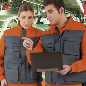 Gilet bicolor unisex. tissu serge 200 g/m2. Matelasse 100% polyester 220 g/m2. Poche poitrine avec fermeture éclair. (facile a broder et sérigraphier). Col haut fermeture éclair entière. Régulateurs latéraux dans le dos. Poche intérieure. 2 départements stylo. Poche poitrine a droite pour téléphone portable. Grande surface de sérigraphie dans le dos. Bas du dos plus long. Fermeture intérieure. (facile a broder et sérigraphie). Coupe-vent élastique aux manches. Extérieur 65% polyester, 35% coton
