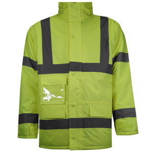 Parka de haute visibilité en tissu Oxford. Coutures thermoscellées. Poches a l’avant eta l’intérieur. Intérieur ouate. Ouverture sur le devant avec glissière et boutons a pression non métalliques sous patte. Double zip, pour attacher une veste polaire assortie. Zip intérieur arrière, pour permettre l’impression. Capuche amovible. Poignets intérieurs élastiques pour une protection optimale contre le froid. 100% polyester.